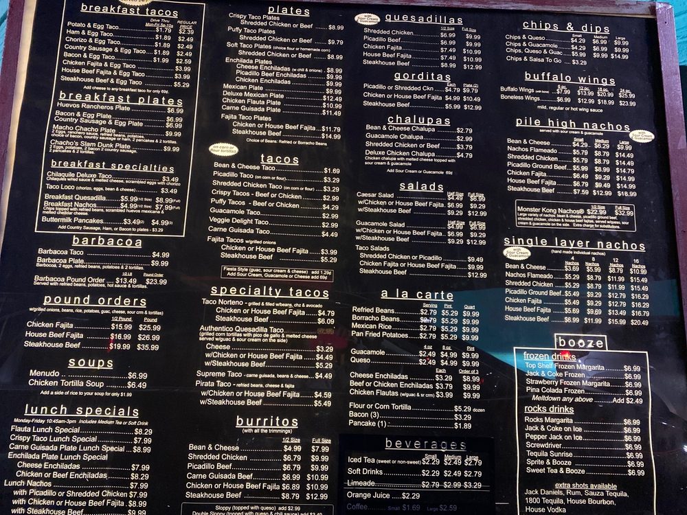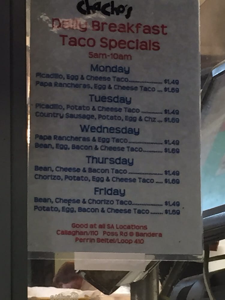 Chacho's, a popular Tex-Mex spot in San Antonio, offers a variety of mouthwatering dishes. Known for its fresh and generously portioned meals, the menu includes options like shredded chicken tacos, bean and cheese nachos, and Authentico Quesadilla Tacos with Steakhouse Beef. Customers praise the friendly service, fast drive-thru experience, and delicious flavors. Despite the limited vegetarian options, Chacho's excels in delivering quality dishes made with love. The bacon and egg taco, a fan favorite, is a must-try. With a focus on customer satisfaction and flavorful Tex-Mex fare, Chacho's is a go-to for breakfast, lunch, dinner, and late-night cravings. Don't miss out on this gem for a satisfying dining experience.